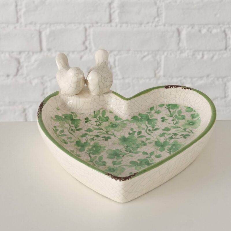 Bain d’Oiseaux « Kate » en Céramique Craquelé Verte Florale H.7,50cm