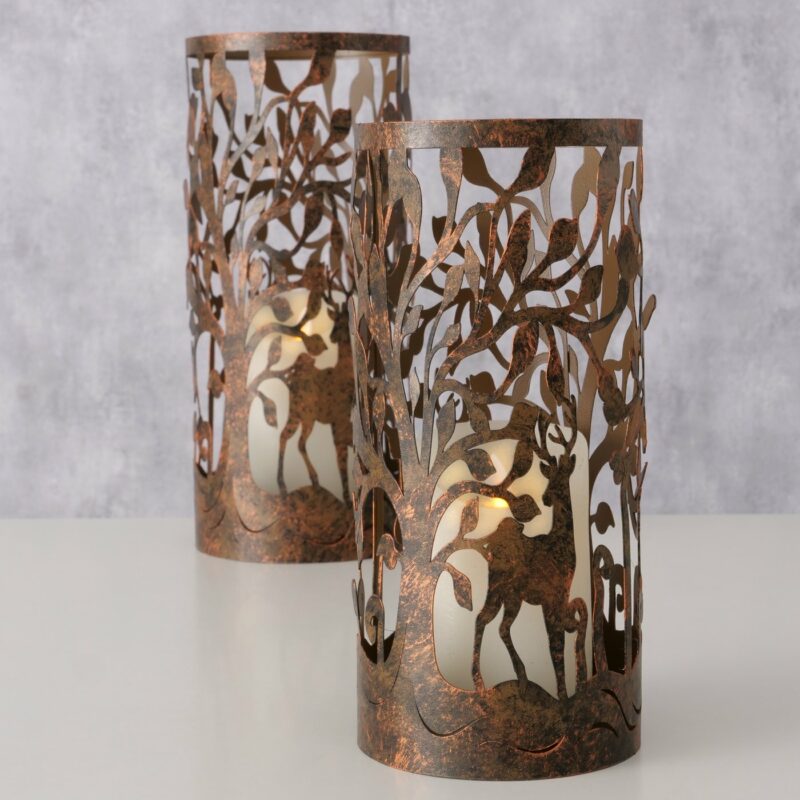 Photophore "Taunus" en Métal Cuivré/Brun H.32cm