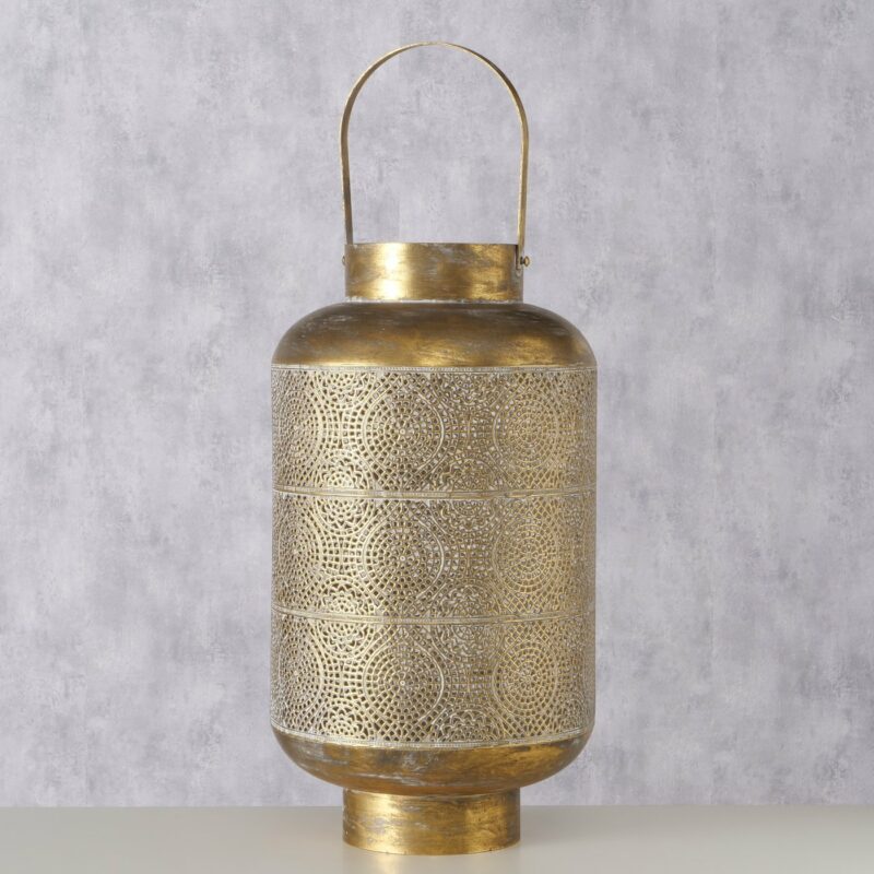 Lanterne "Kamila" Ronde en Métal Doré 28,5x63cm
