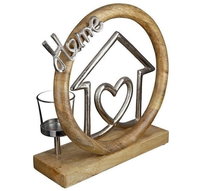 Bougeoir Arbre de Vie en Métal Noir et Verre, 9x7x11cm