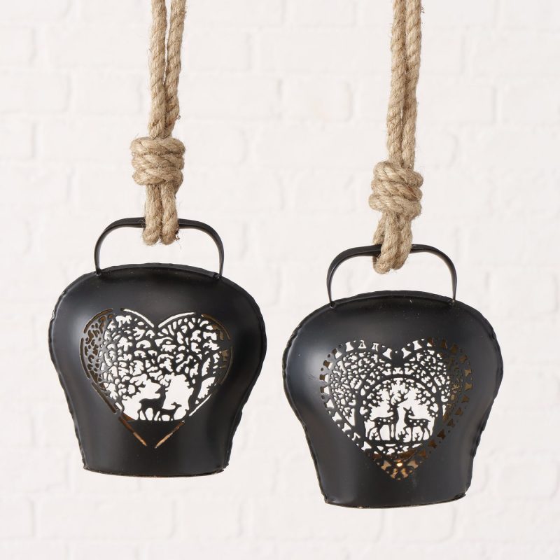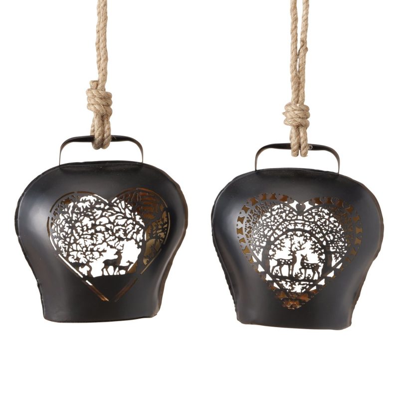 Lanterne Elgo Cloche en Métal Enduit Noir Décor Coeur Forestier 2 Modèles au Choix H.15cm