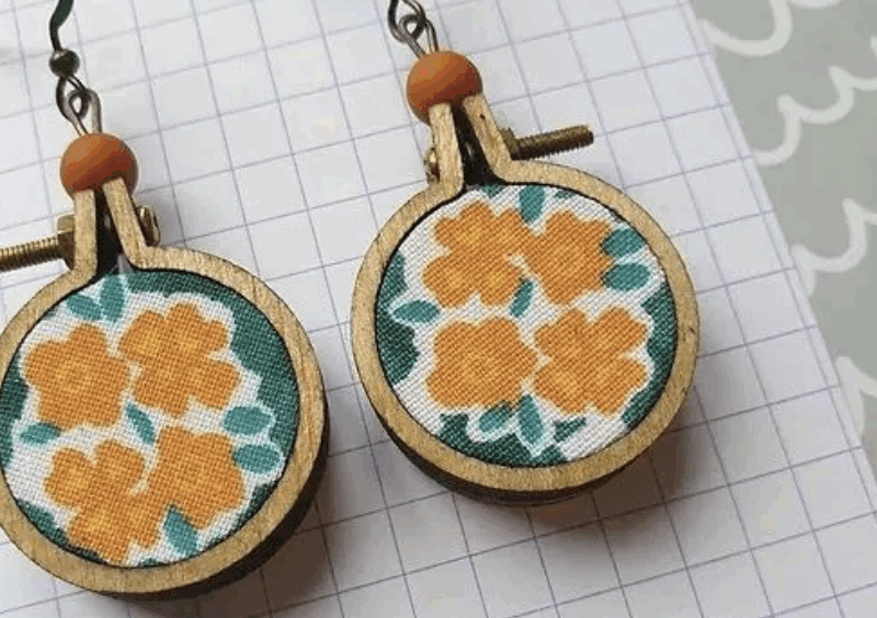 Boucles d’Oreilles « Jonquille » en Bois et Coton Upcycling
