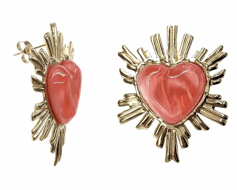 Boucles d’Oreilles en Acier Inoxydable en Forme de Cœur Sacré Résine Corail
