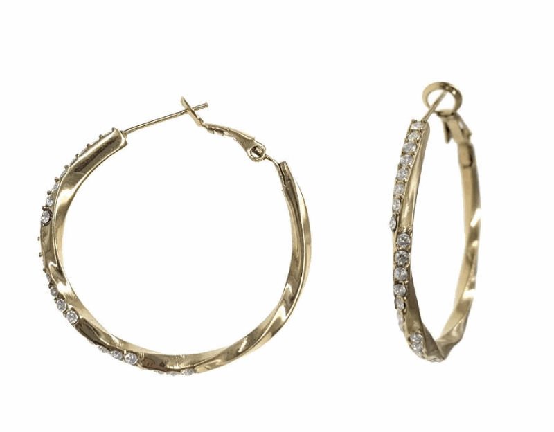 Créoles en Acier Inoxydable Doré Torsadé avec Strass