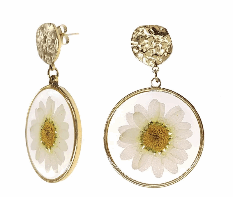 Boucles d’Oreilles Fleur en Résine Wax – Bijou Coloré en Acier Inoxydable Doré – Fabrication Artisanale France