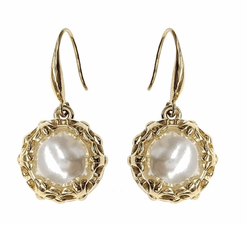 Boucles d’Oreilles en Acier Inoxydable Doré, Perle Blanche