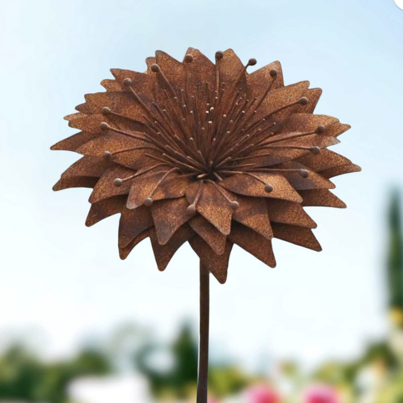 Piquet Fleur Métal Rouillé ø20cm H.150cm