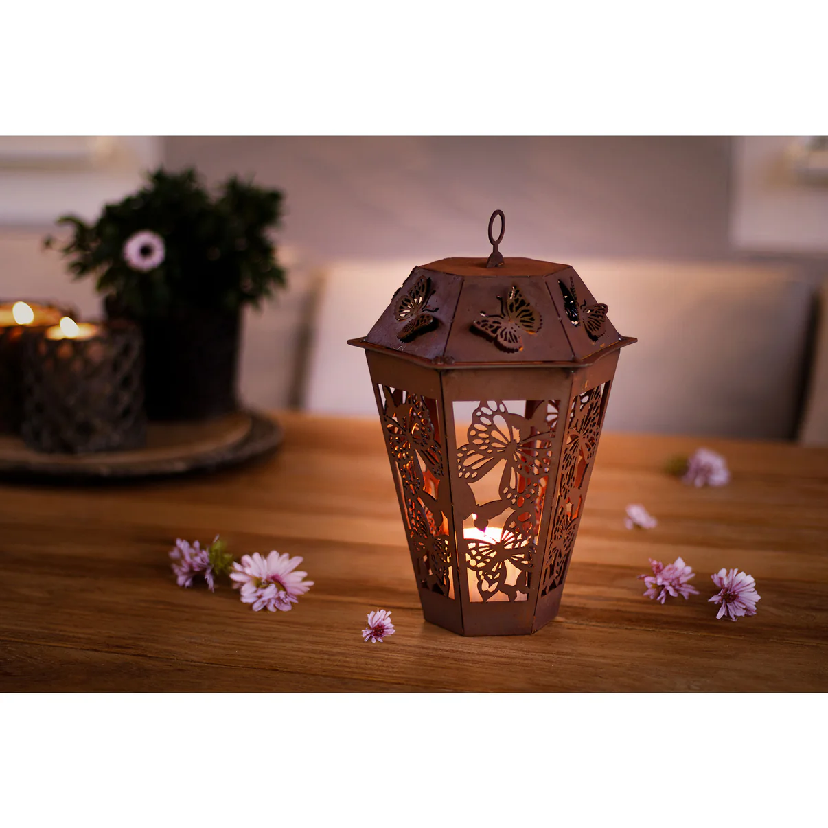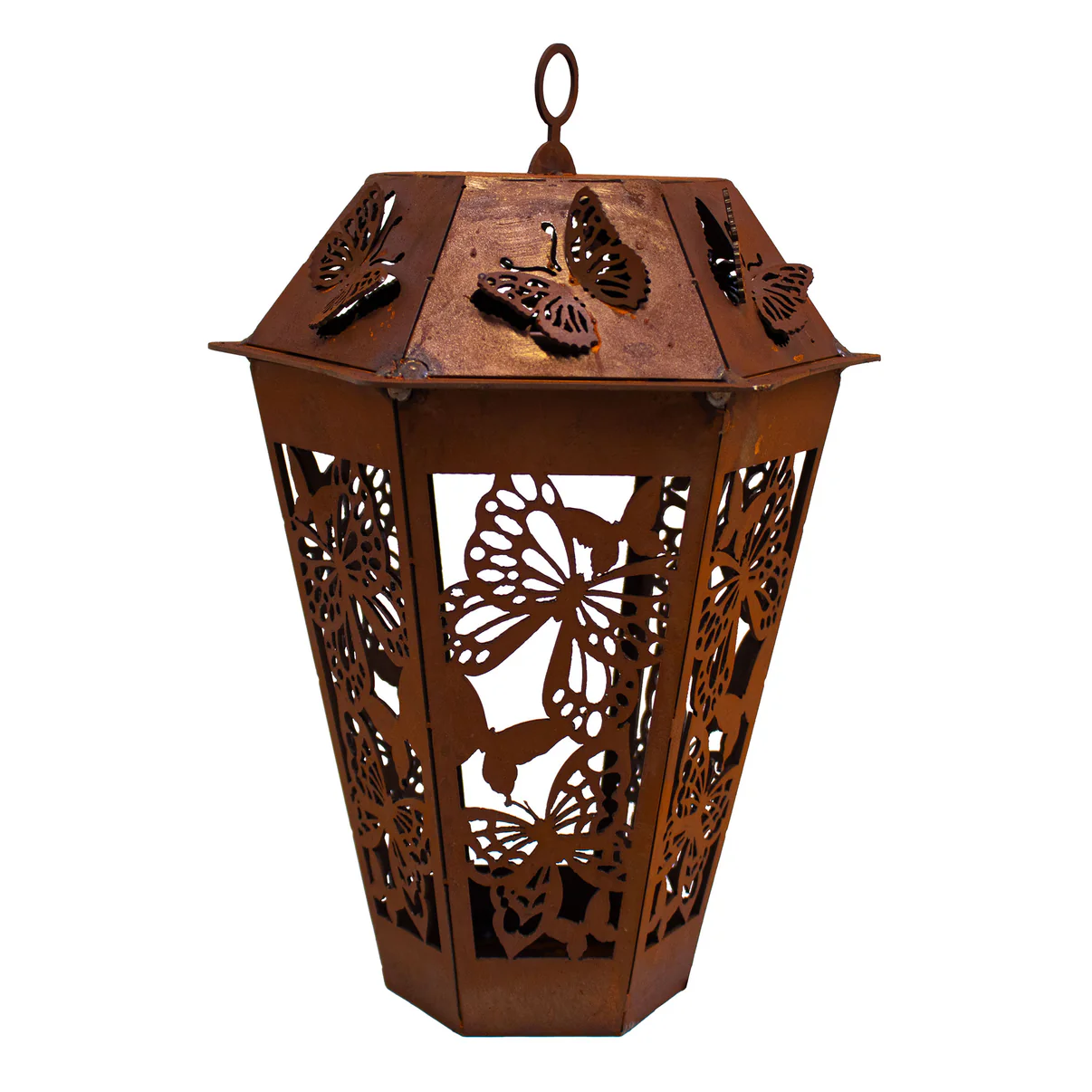 Lanterne Ajourée avec Papillons en Métal Rouillé 20x20xH.30cm