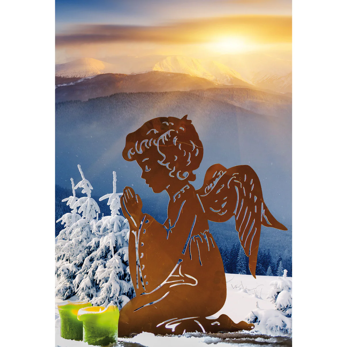 Ange Priant sur Socle, en Métal Rouillé 25xH.30cm