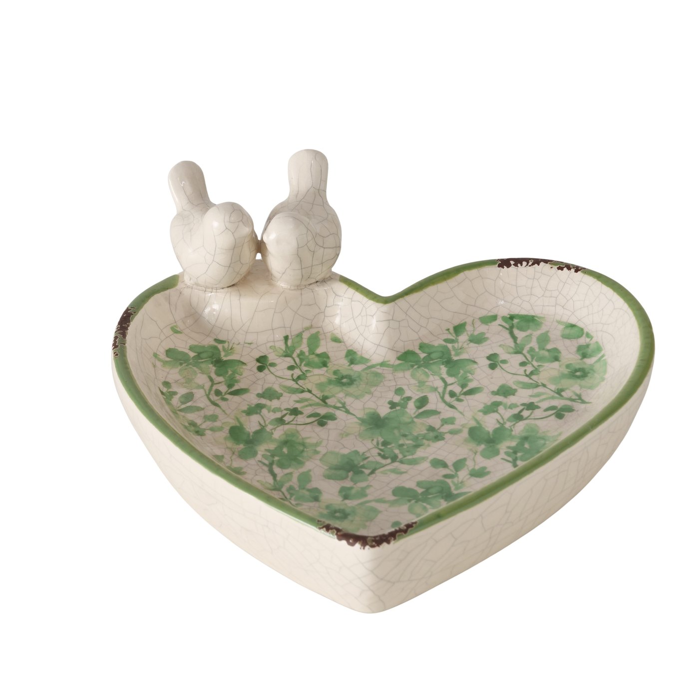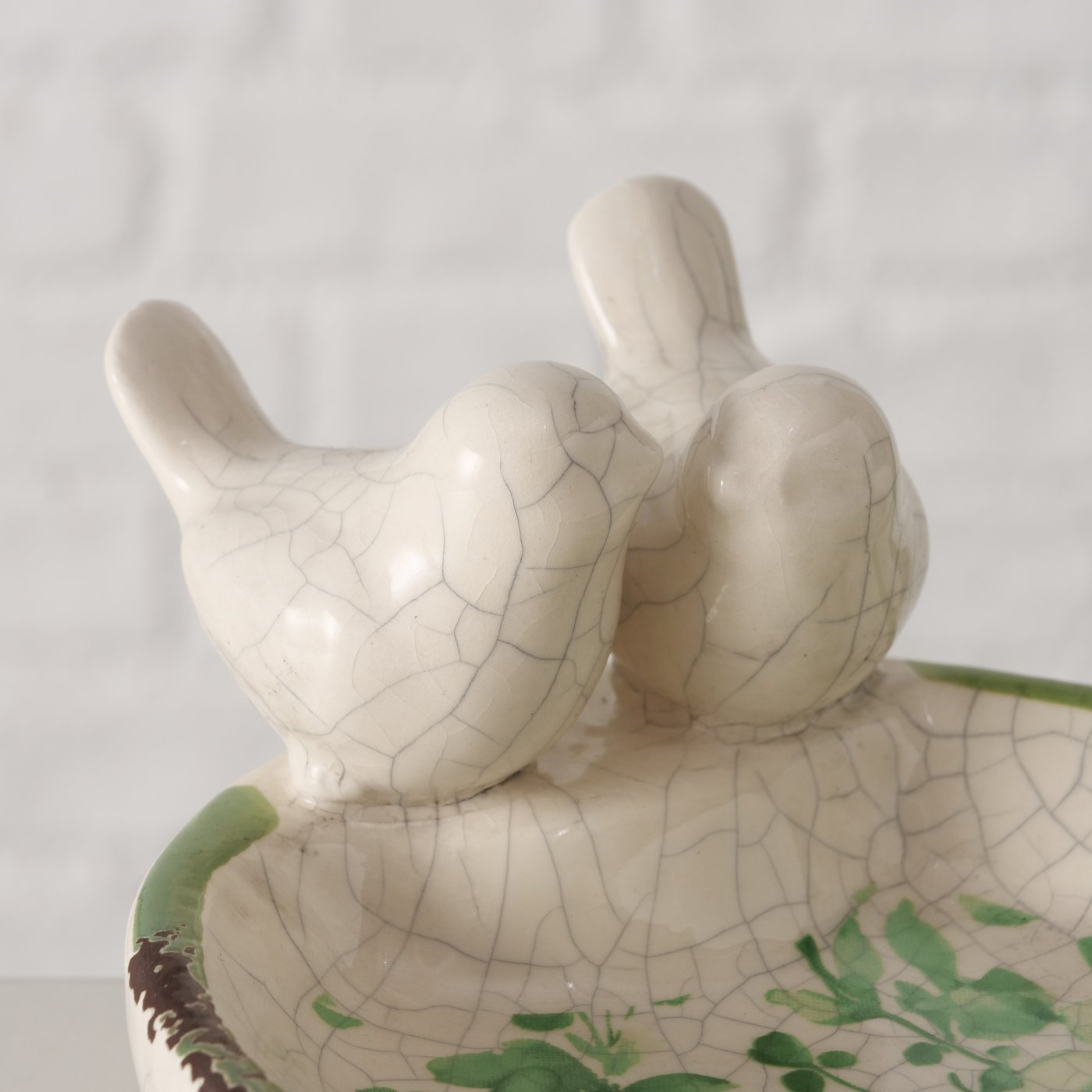 Bain d’Oiseaux « Kate » en Céramique Craquelé Verte Florale H.7,50cm