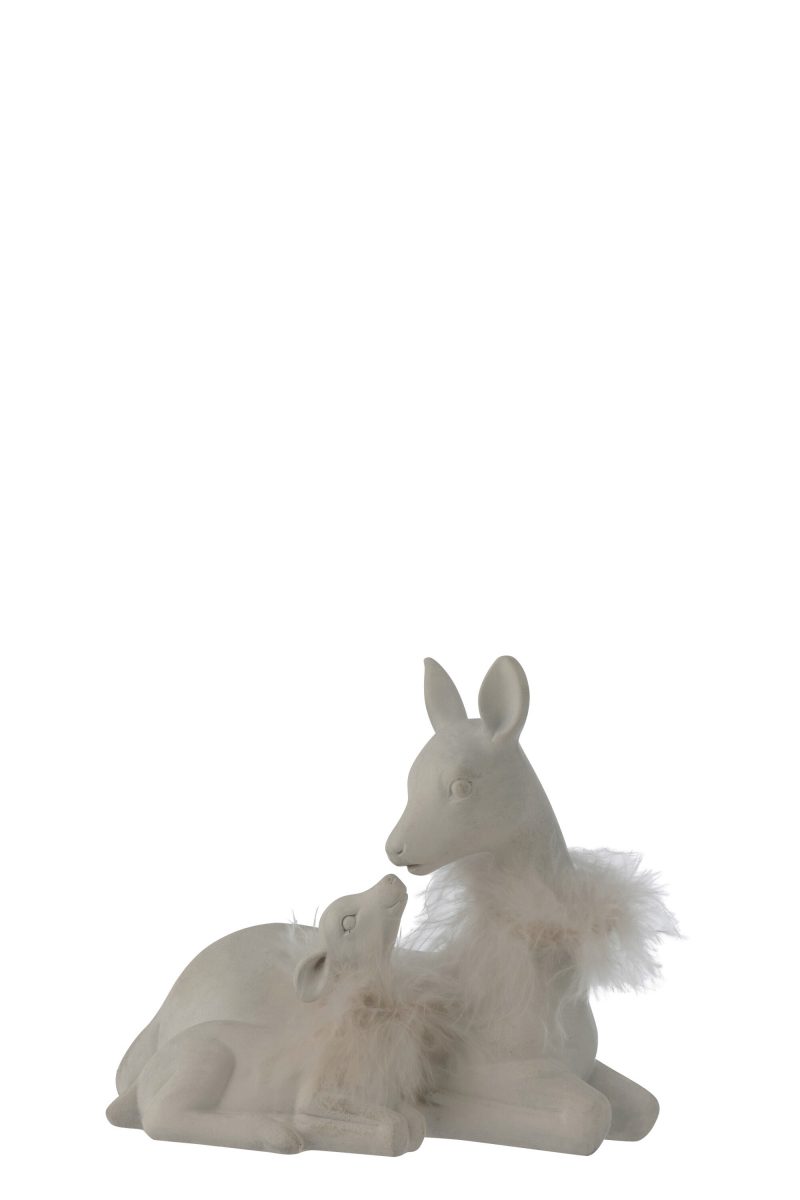 Biche et son Faon Couchés en Résine Blanche 17x11x15,5cm