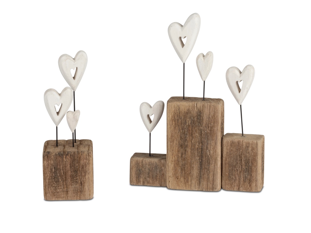 Bloc à 3 Coeurs en Bois Naturel H.20cm