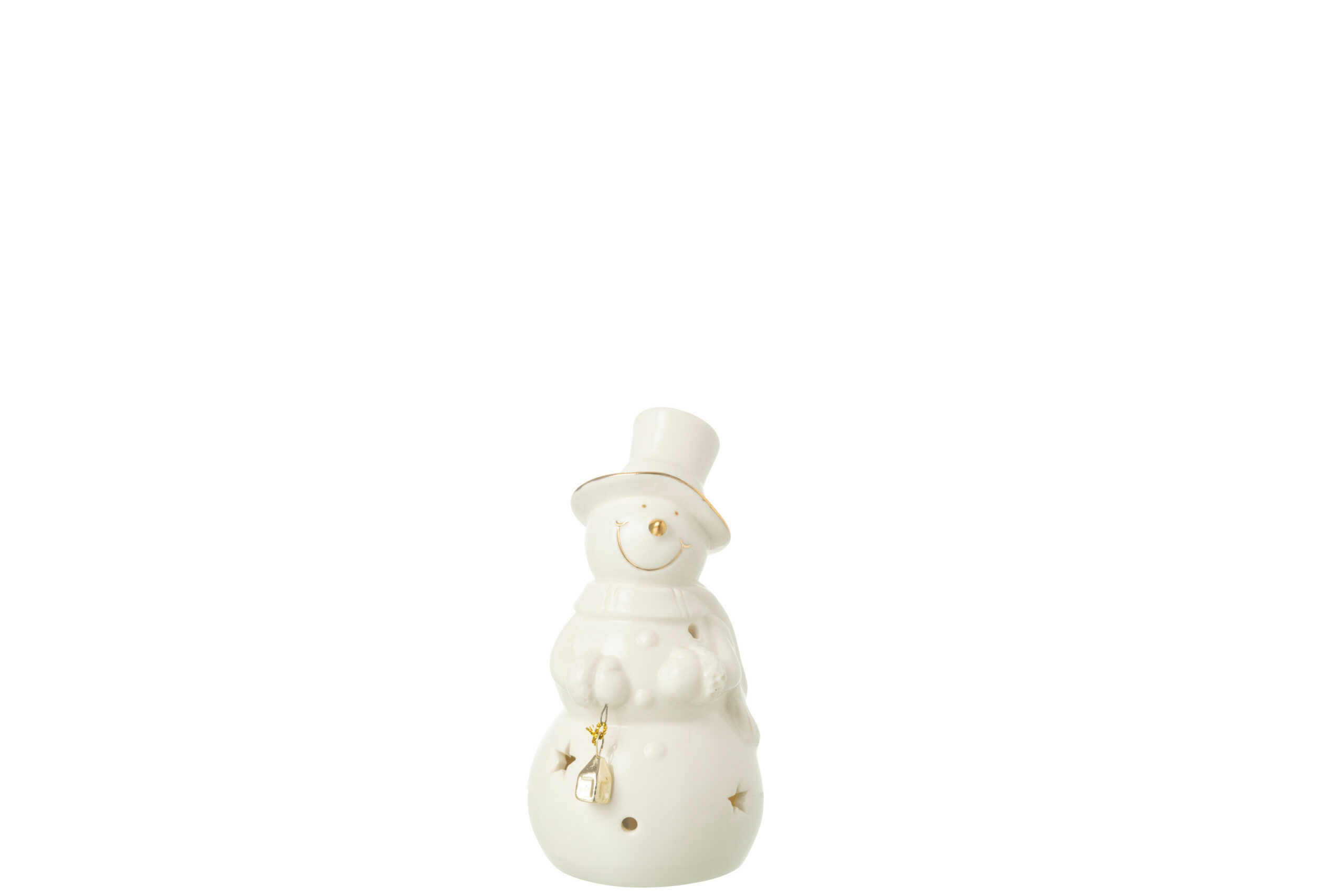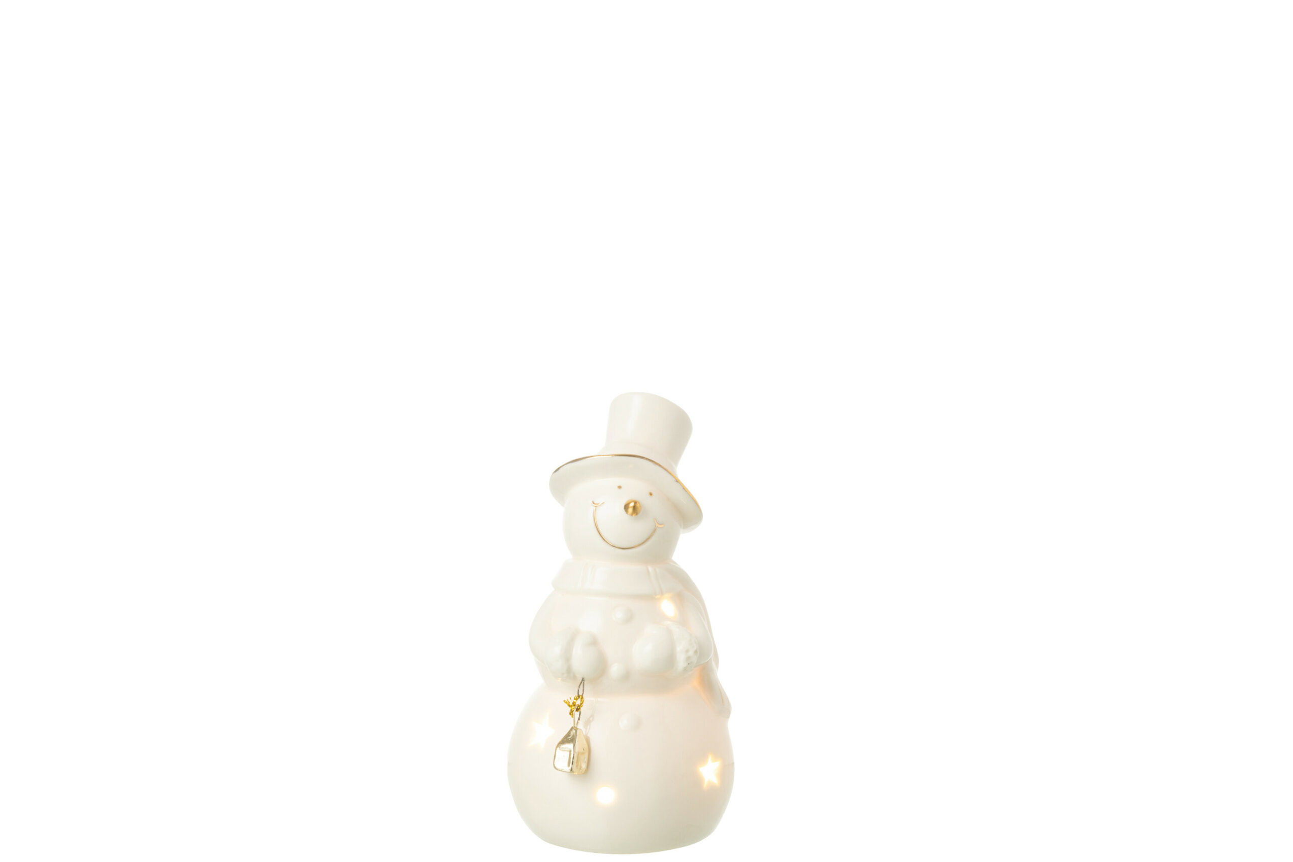 Bonhomme de Neige à LED en Porcelaine Écru 6,5x6x12cm