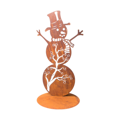 Bonhomme de Neige sur Socle Rond en Métal Rouillé H.50cm