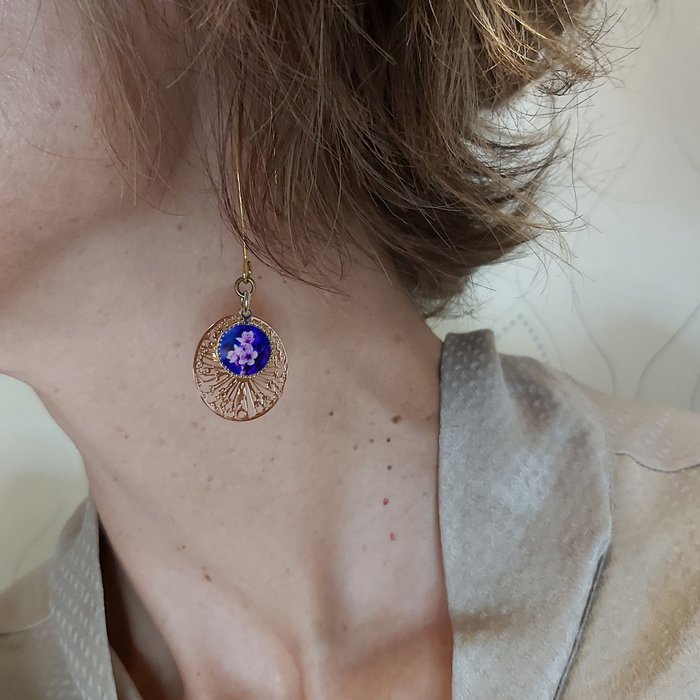 Boucles d’oreilles résine et laiton doré or 24K, estampe dandelion.