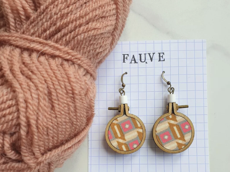 Boucles d’Oreilles « Fauve » en Bois et Coton Upcycling