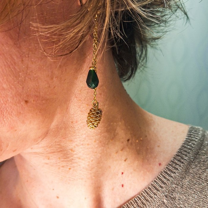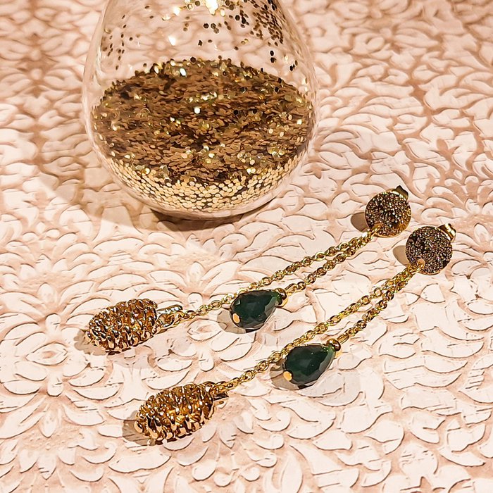 Boucles pomme de pin perles facettes clous acier inoxydable