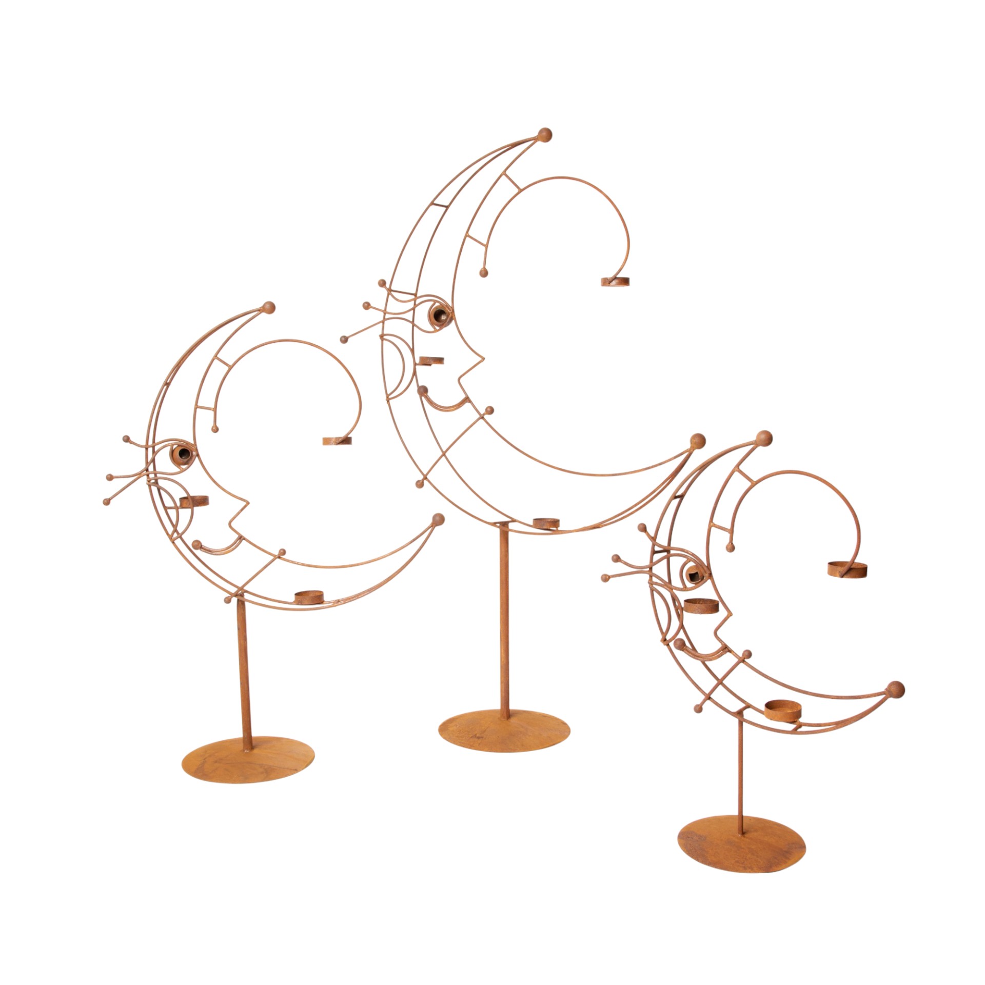Bougeoir Grande Lune sur Socle en Métal Rouillé pour 3 Bougies 49x11xH.65cm