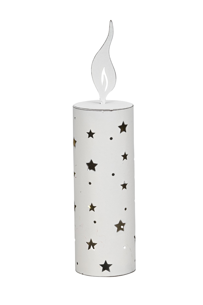 Bougie en Métal Blanc Délavé avec LED ø5xH22,5cm