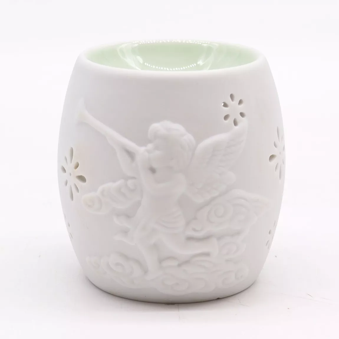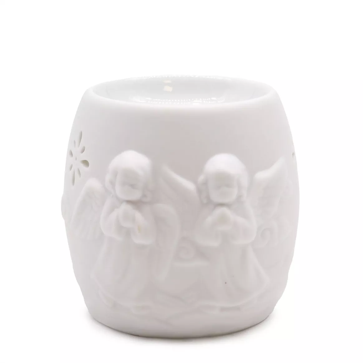 Brûle Parfum en Porcelaine Blanche Décor Anges 7×8,5cm, 3 Modèles au Choix