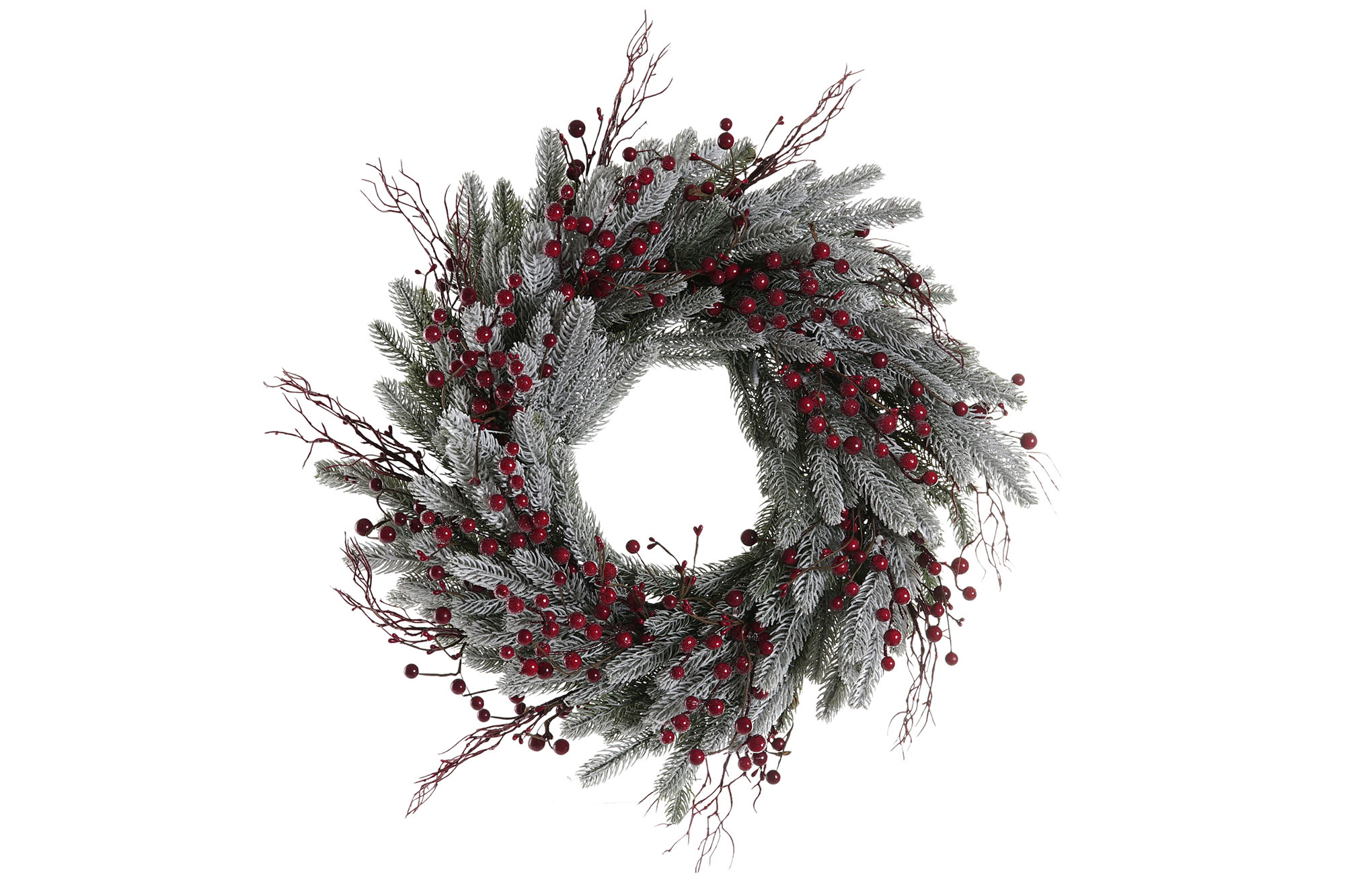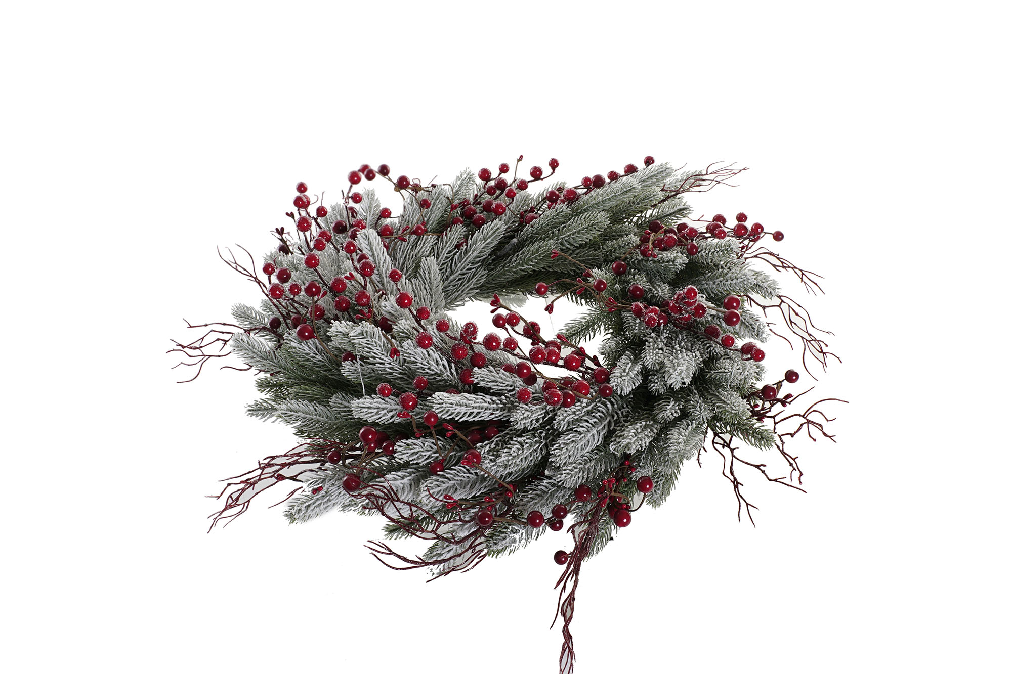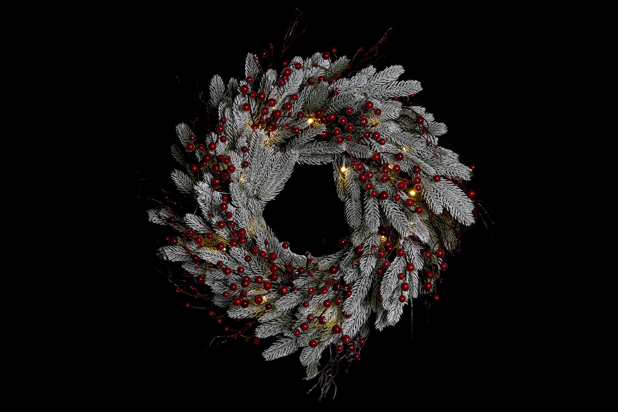 Couronne de Sapin PVC à LED et Boules Rouges 67x20x67cm