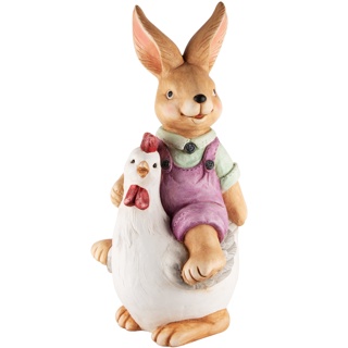 Déco Lapin sur Poule en Magnésie, 22x22x49cm
