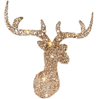 Déco murale Tête de Cerf, Champagne/Paillettes, Rotin, LED, 10x35x46cm