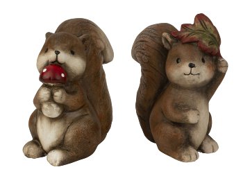Écureuil debout avec Feuille ou Champignon H.13,5cm