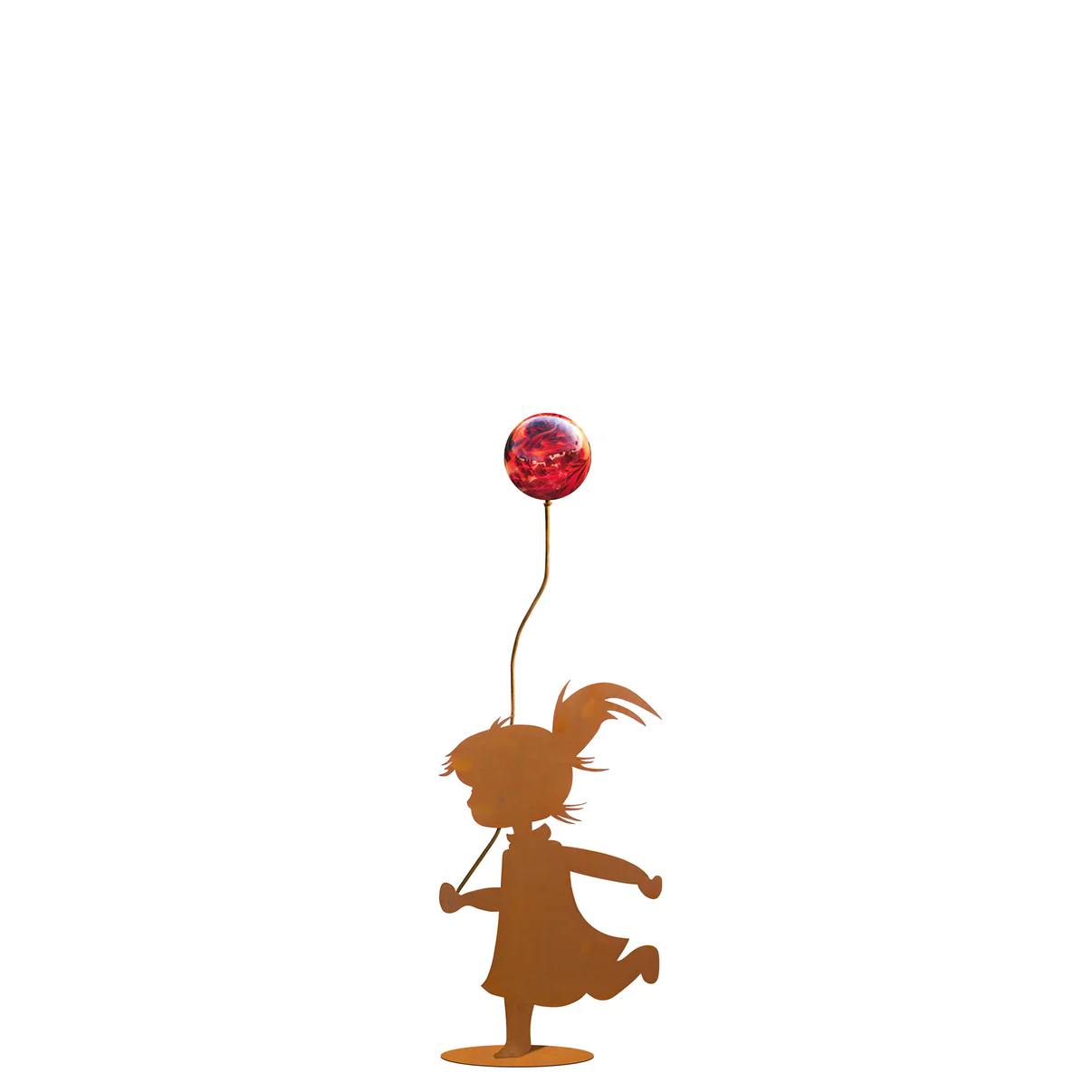Fillette sur Socle en Métal Rouillé, avec Ballon en Verre ø7cm, Divers Coloris, 18xH.30cm