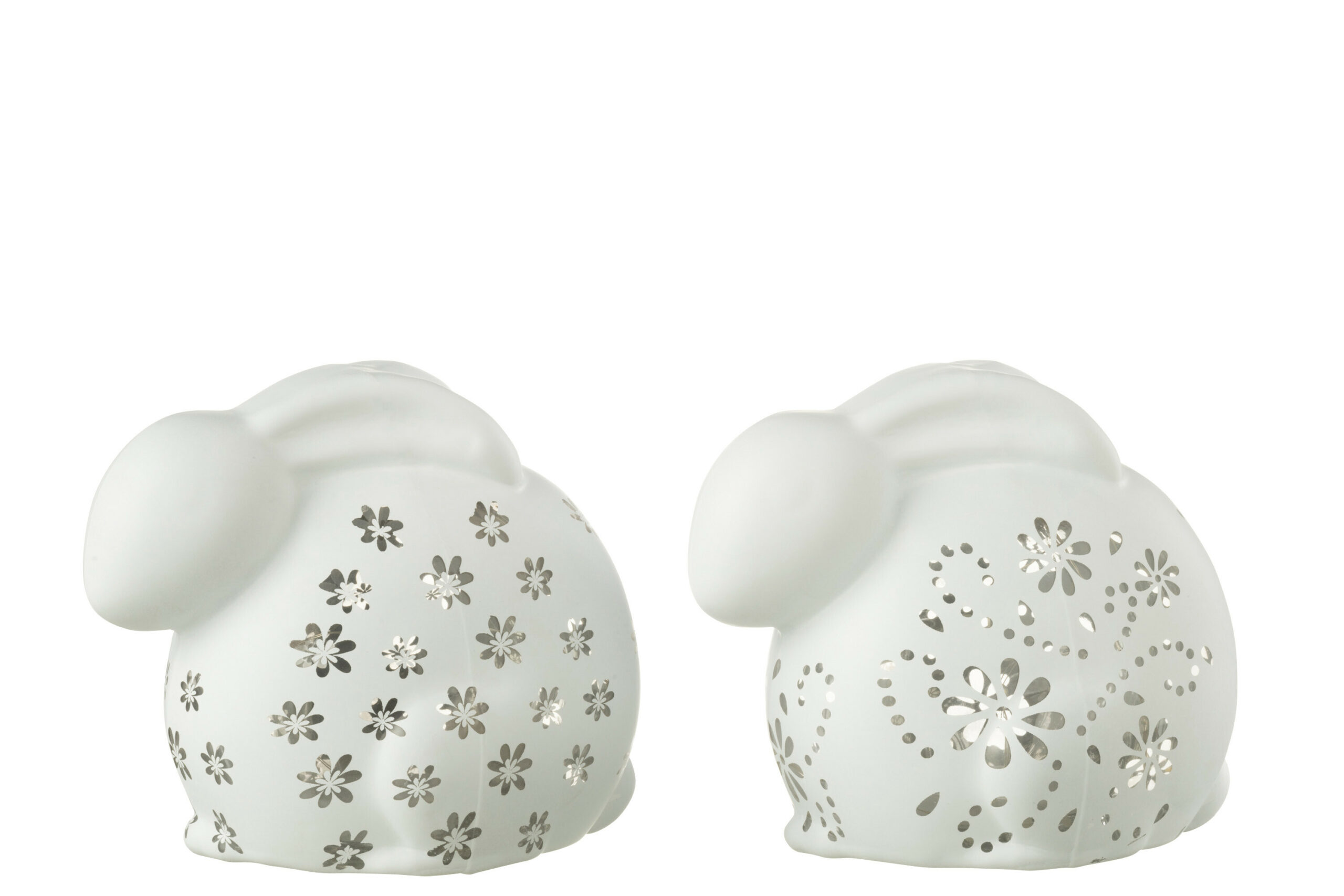 Lampe Lapin à LED en Céramique Fleurie Blanche, 2 Modèles au Choix 16x12,5x14cm