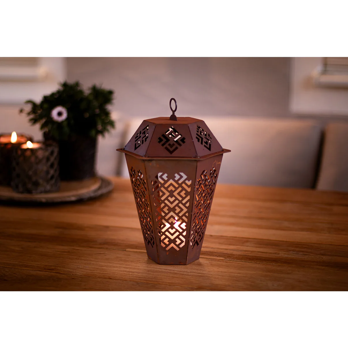 Lanterne Ajourée en Métal Rouillé 20x20xH.30cm
