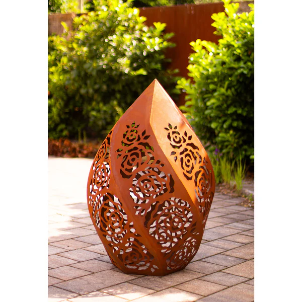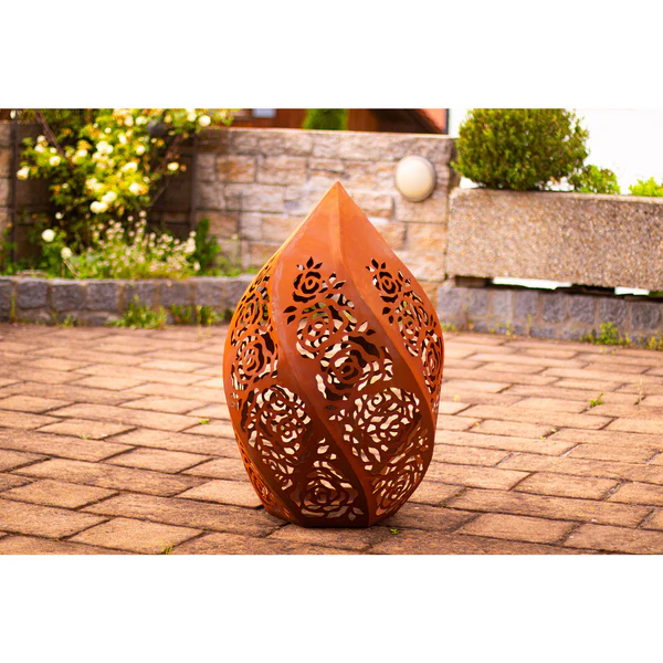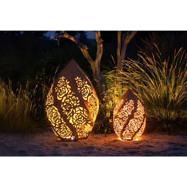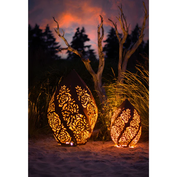 Lanterne « Rêve de Roses » en Métal Rouillé, ø42xH.65cm