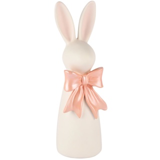 Lapin avec Noeud Rose en Résine Blanche 10x10x31cm