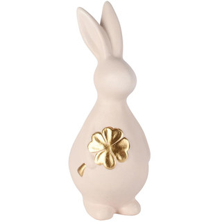 Lapin Blanc en Terracotta aver Trèfle Doré 11x9x25cm