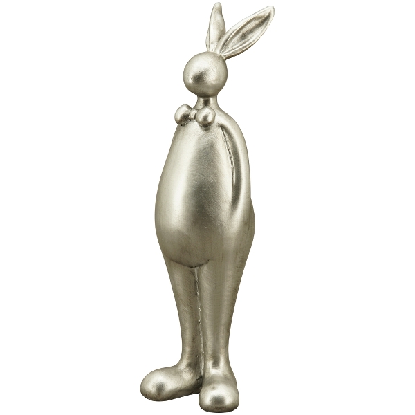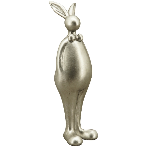 Lapin Noeud Pap en Polyrésine Argentée 7,5x7,5x26cm