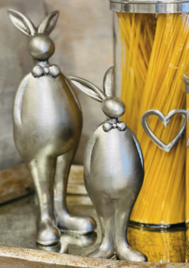 Lapin Noeud Pap en Polyrésine Argentée 7,5x7,5x26cm – Image 4