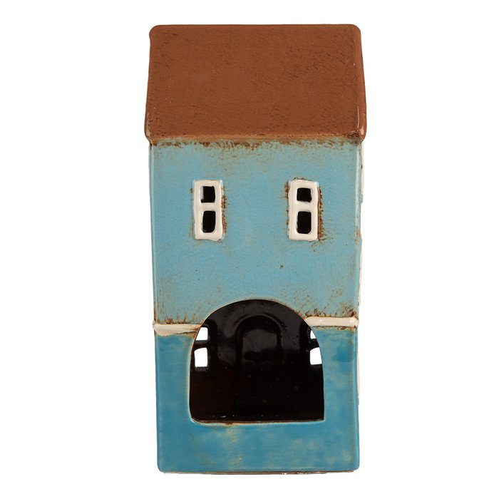 Maison Lanterne en Céramique Bleue 11x9x22 cm