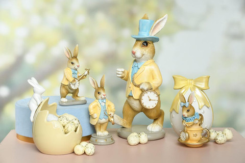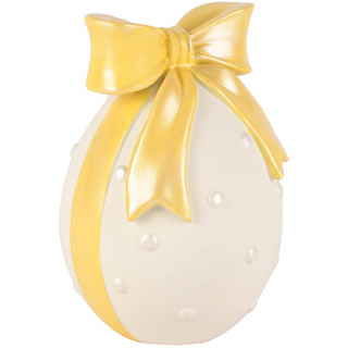 Oeuf avec Noeud Jaune en Résine Blanche 10x10x16cm