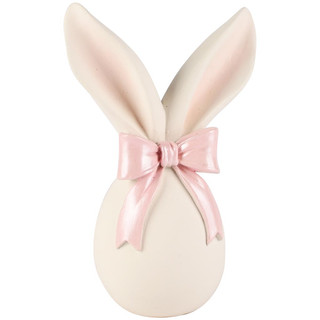 Oeuf avec Noeud Rose et Oreilles de Lapin en Résine Blanche 12x8x18cm