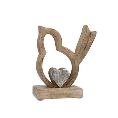 Oiseau en bois avec coeur en métal 15x6x18cm