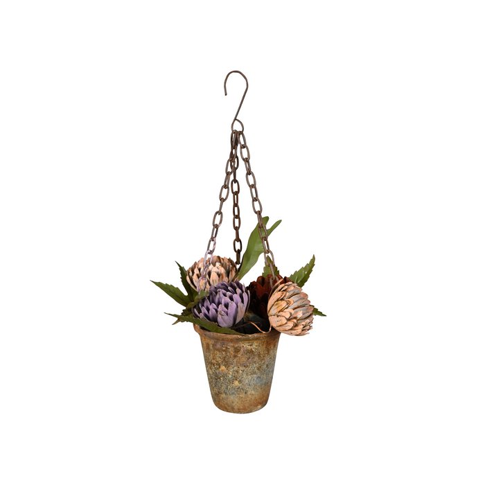 Pendentif Fleurs dans un Pot en Fer ø16xH15cm + Chaîne 19cm
