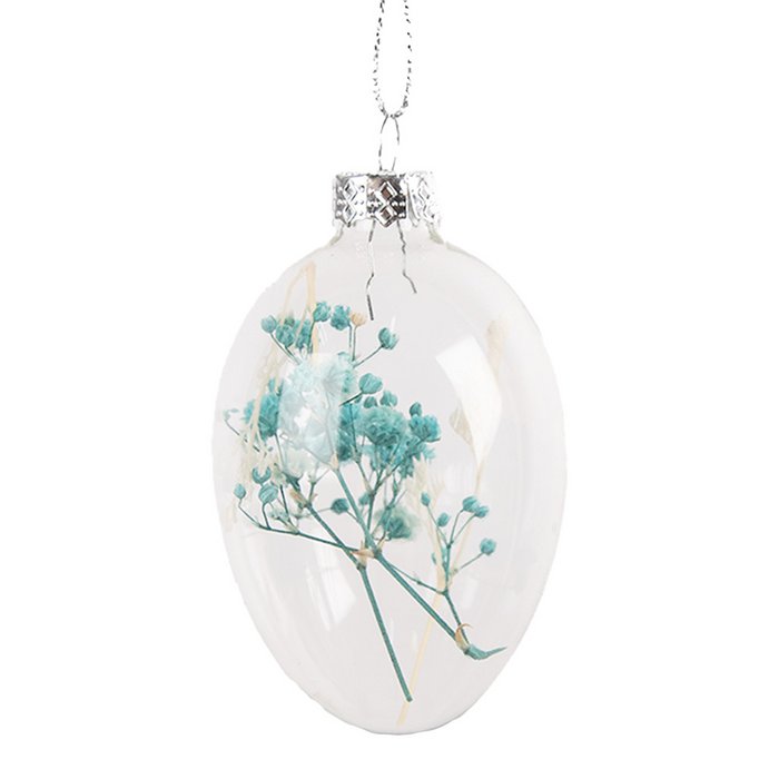 Pendentif Oeuf en Verre Transparent avec Fleur Séchée ø5x8cm