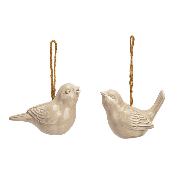Pendentif Oiseau en Porcelaine Beige, 2 Modèles au Choix, 9x4x4cm