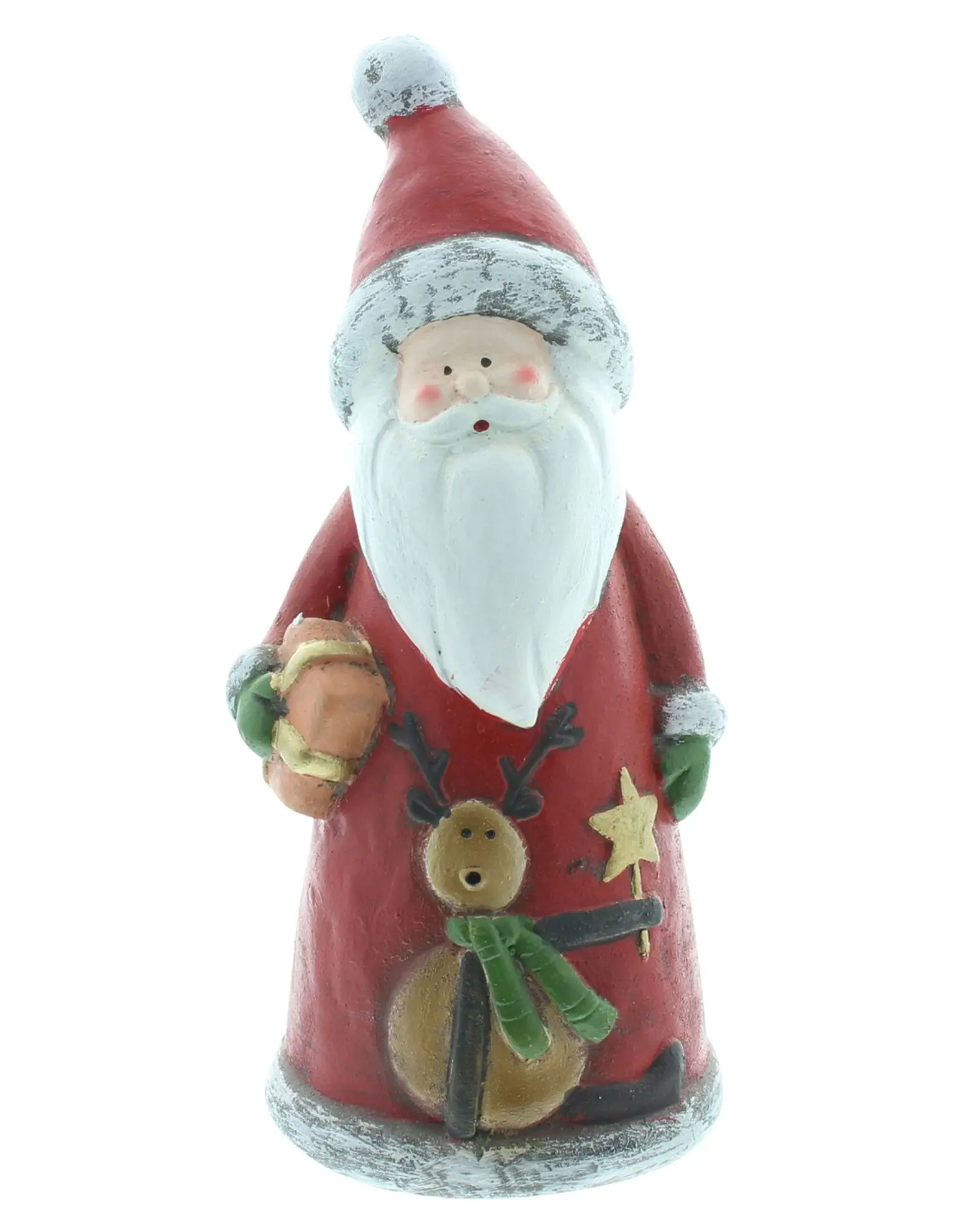 Le Père Noël « Cadeau » est une figurine de décoration de Noël en polyrésine de qualité supérieure d’un rouge vif avec des gants verts.