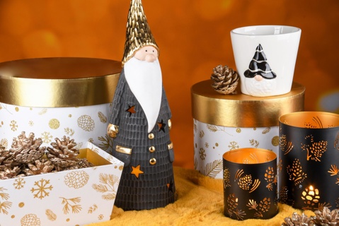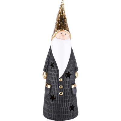 Père Noël Debout, Or/Noir, Céramique, LED, 12x11x36cm