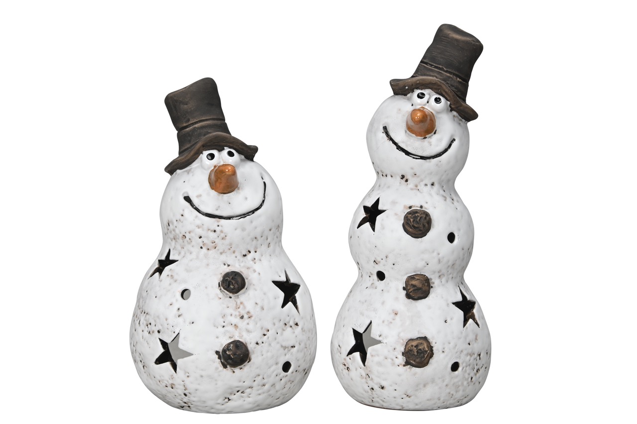 Photophore Bonhomme de Neige en Céramique Blanc et Noir ø8,5xH17,5cm, 2 Modèles au Choix