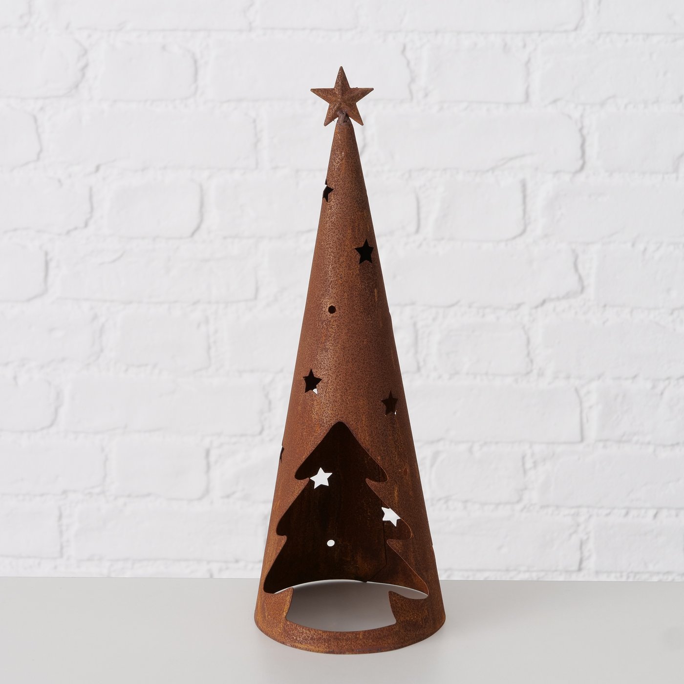 Photophore « Tipi » en Métal Rouillé, H.33cm