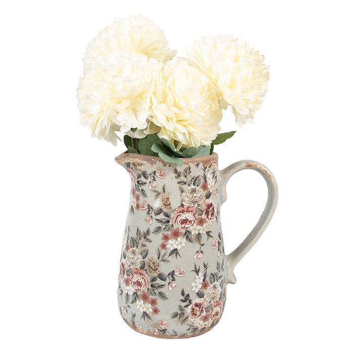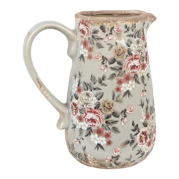 Pichet Décoratif en Céramique Grise Décor Floral 16x12x18cm
