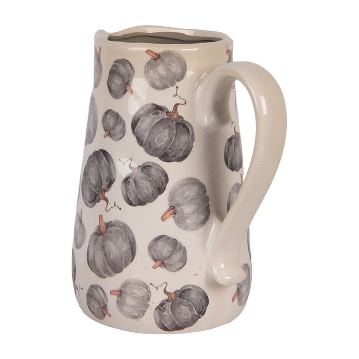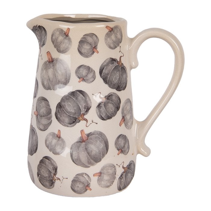 Pichet Décoratif en Céramique Grise et Beige Décor Citrouilles 21x15x23cm