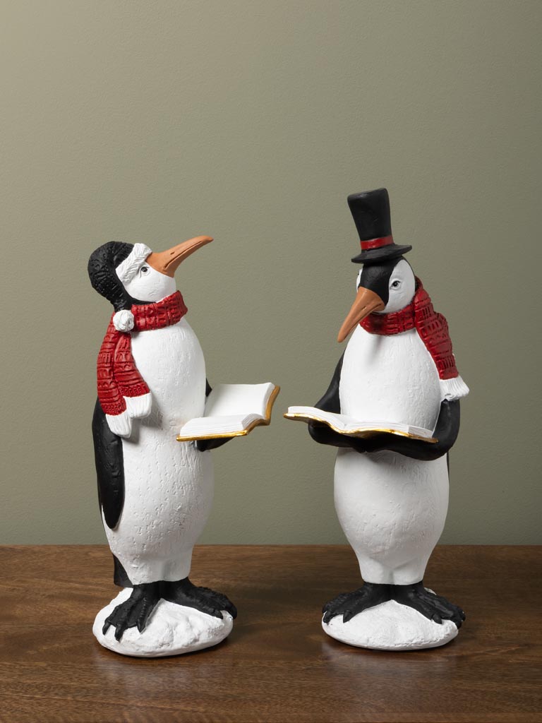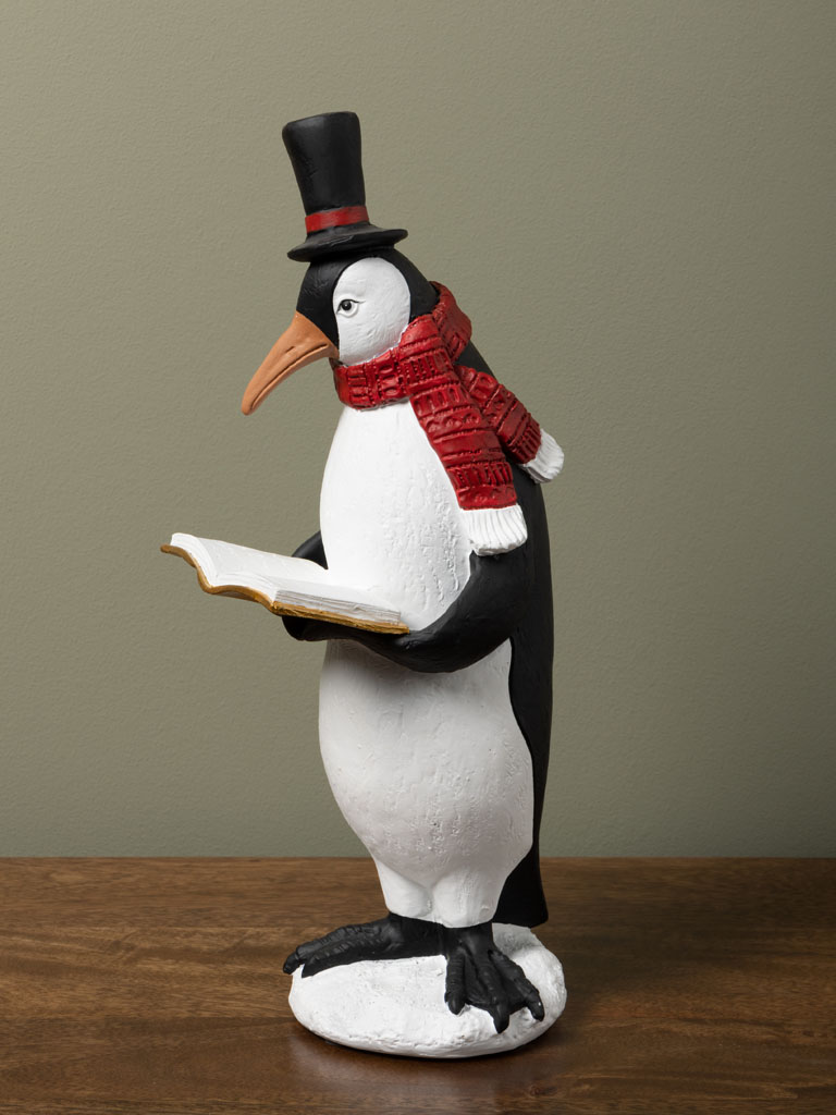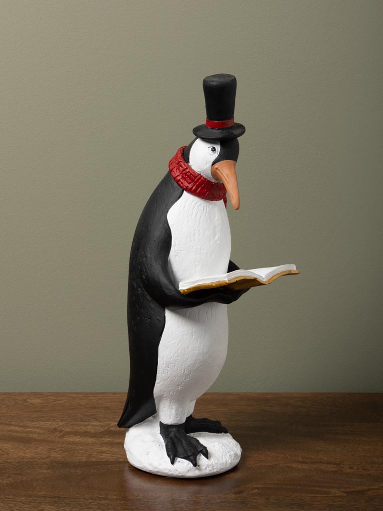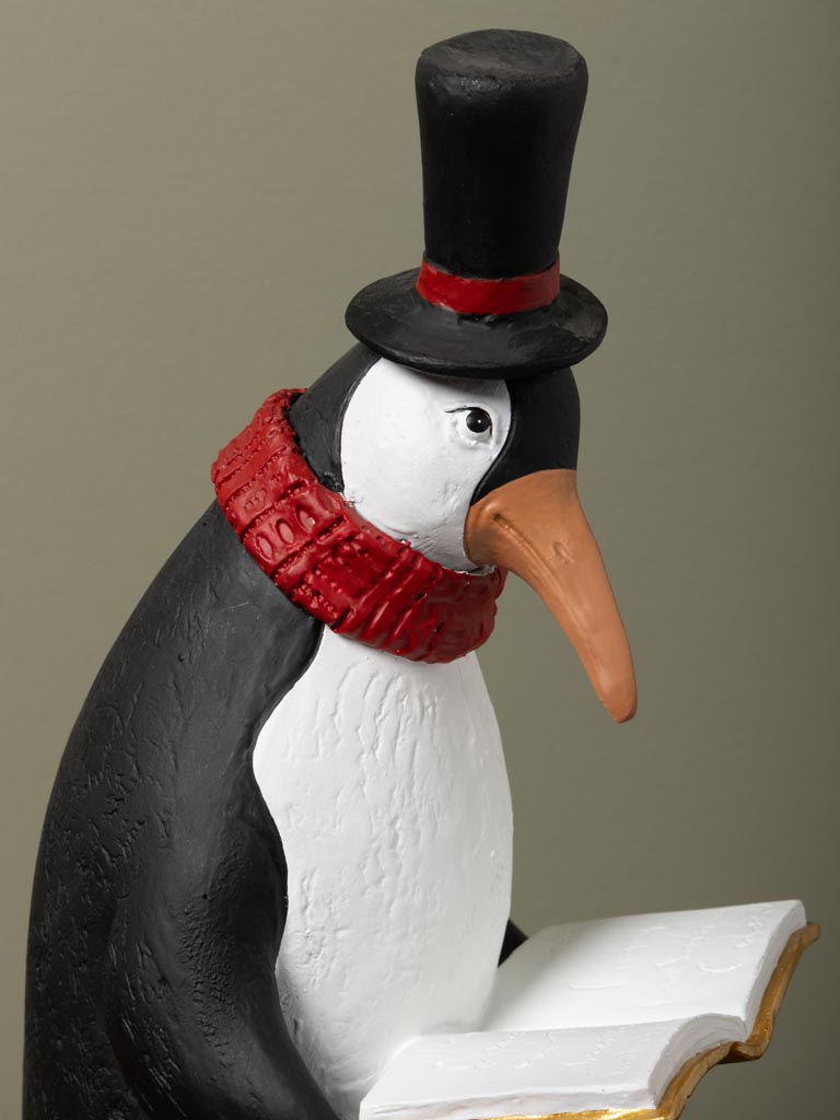 Pingouin Christmas, Carol et Haut de Forme en Résine 29x14x11,5cm